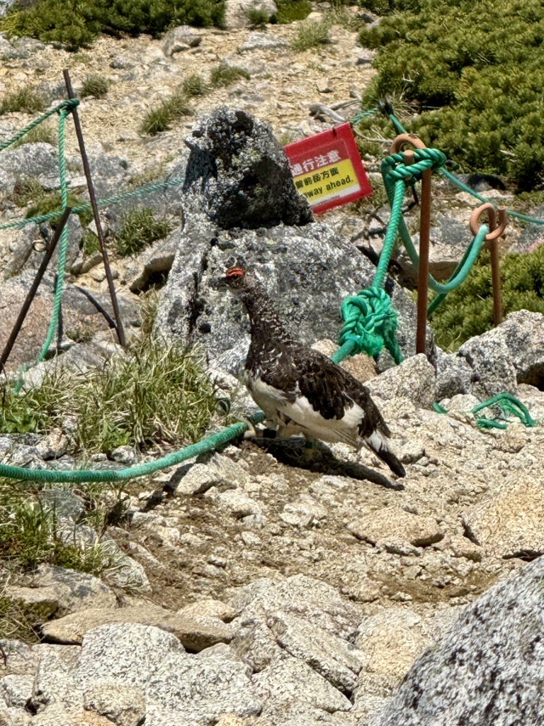 燕岳以来の雷鳥。ババァは人生初。距離を取って撮影タイム。
