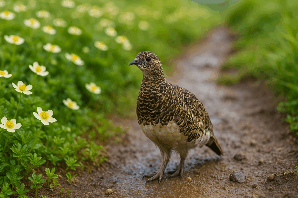 かわいい雷鳥と、お花畑と、ぬかるみ
